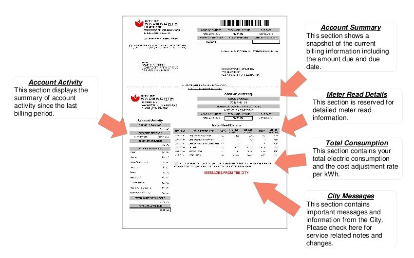 Additionally, customers may select to have an email sent to them stating that their bill is "ready to view" as opposed to having a bill sent to their home address. Simply go to wadsworthcity.com, select City, then Utilities, Pay Your Bill Online. You will need your utility account number and the exact name listed on the account to set up your online access. View an outline of the various elements of your utility bill.